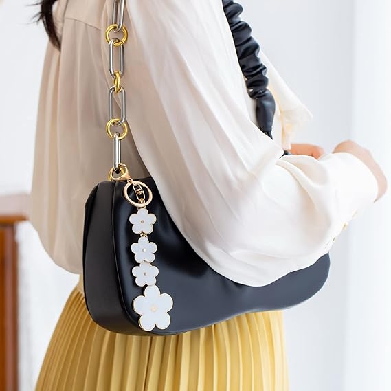 Women's Flower Bag Charms Enameled Keychain Purse Accessories